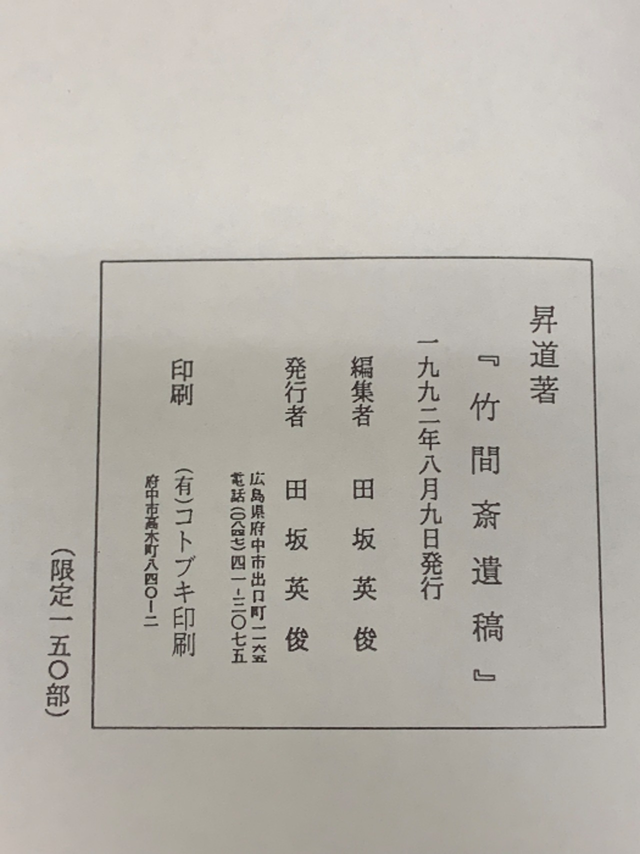 タイトル:竹間斎遺稿 昇道著 田坂英俊