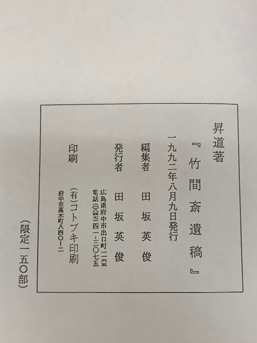 竹間斎遺稿 昇道著 田坂英俊