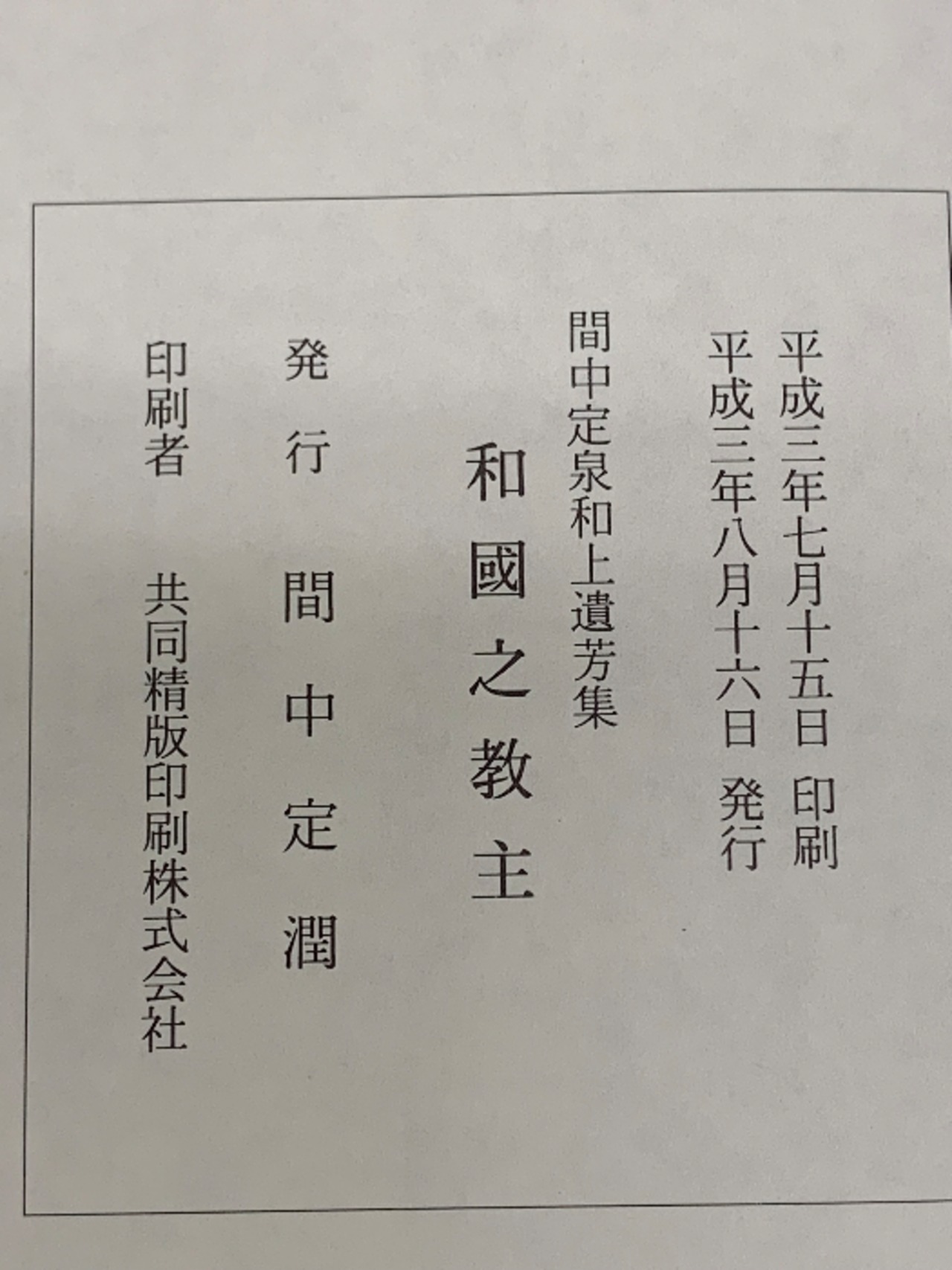 タイトル:間中定和泉上遺芳集 和國之教主