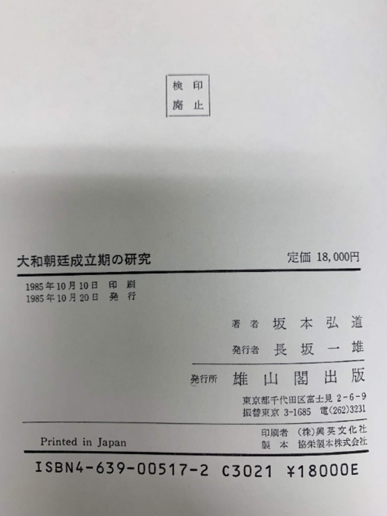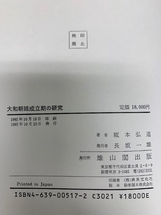 タイトル:大和朝廷成立期の研究 雄山閣 坂本弘道