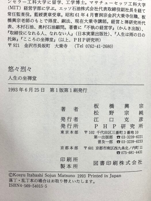 タイトル:悠々烈々 人生の坐禅堂 PHP研究所 板橋 興宗