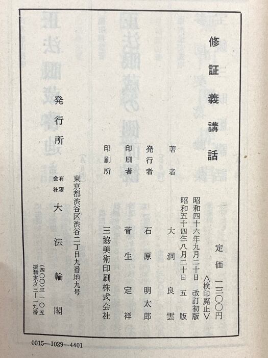 タイトル:修証義講話 大法輪閣 大洞 良雲