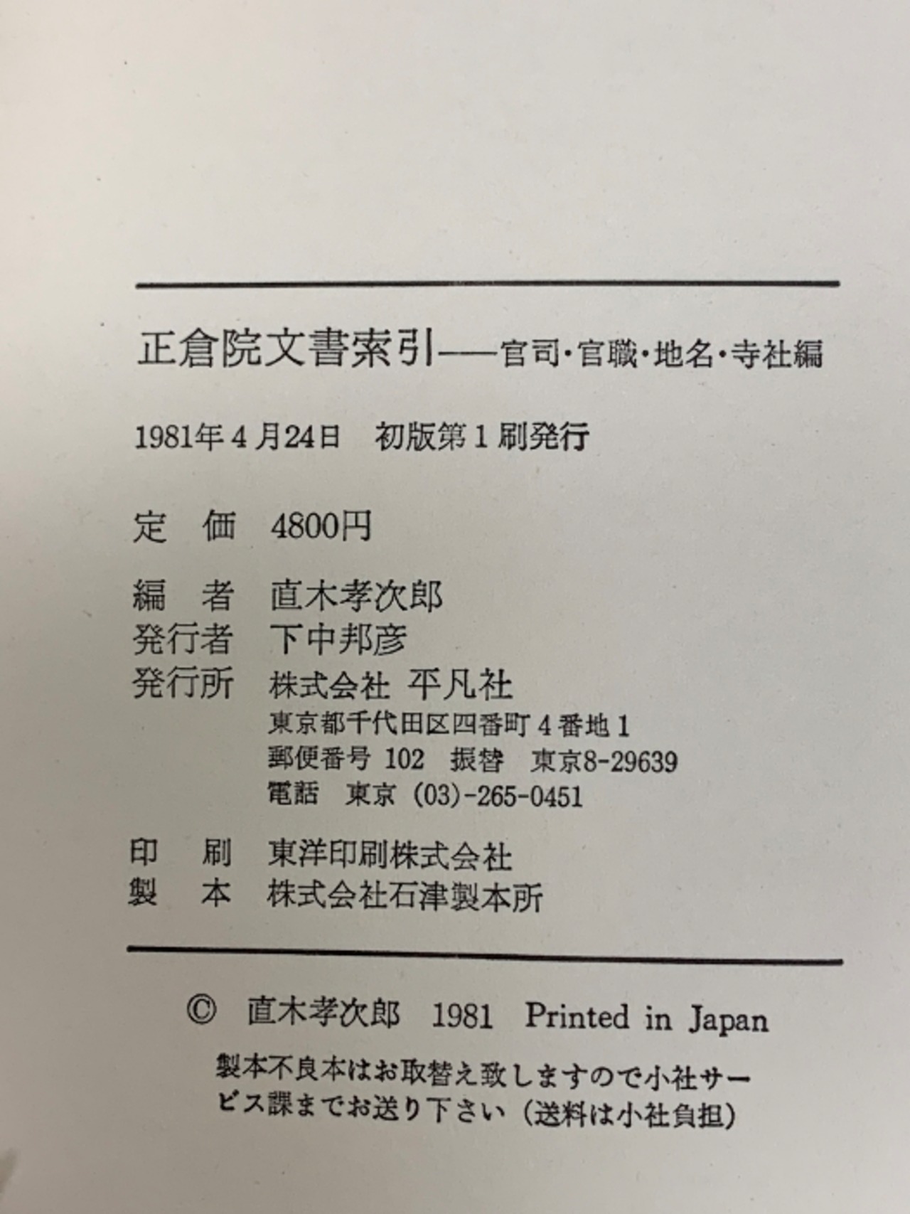 タイトル:正倉院文書索引―官司・官職・地名・寺社編 平凡社 直木孝次郎
