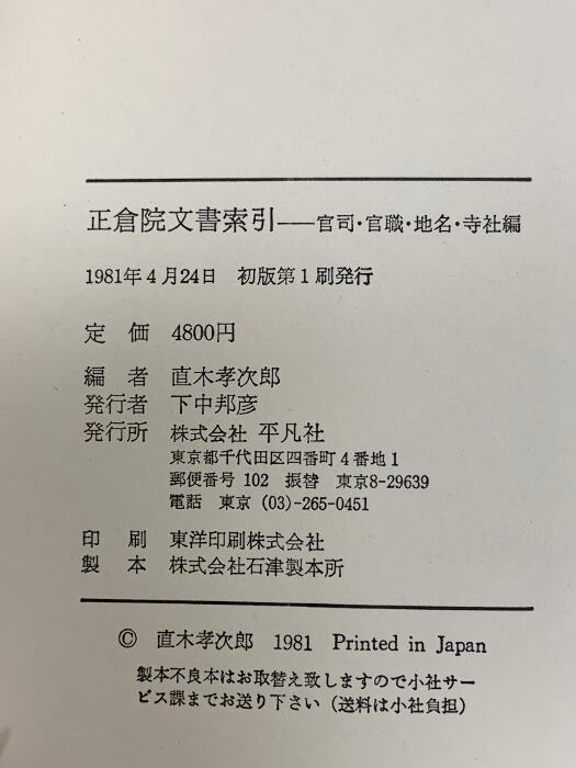 正倉院文書索引―官司・官職・地名・寺社編 平凡社 直木孝次郎