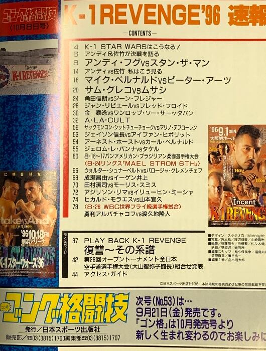 (4) ゴング格闘技 No.53 1996年10月8日号 K-1リベンジ アンディ、10・18佐竹戦へ狼煙!日本スポーツ