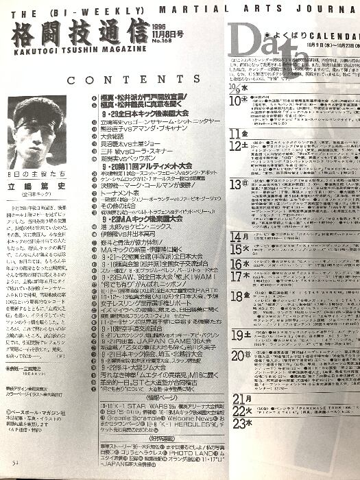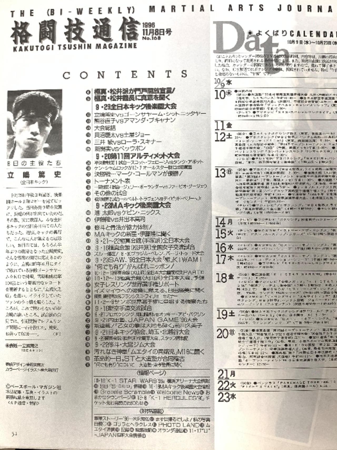 (9) 格闘技通信 No.168 1996年11月8日号 分裂騒動と真剣勝負だ 立嶋、熊谷復活! ベースボール・マガジン