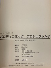 タイトル:パロディコミック プロジェクトA子 昭和61年8月10日 ラポート(株) 真鍋譲治 矢野健太郎 影次ケイ
