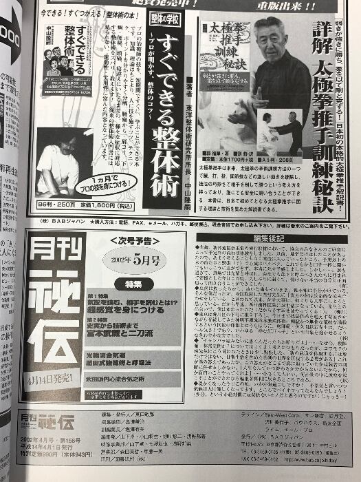 タイトル:(5) 月刊 秘伝 武道・武術の秘伝に迫る 2002年4月号 武術の本質と未来の考察 古流新時代 “咬み合わせ”と身体論 BABジャパン