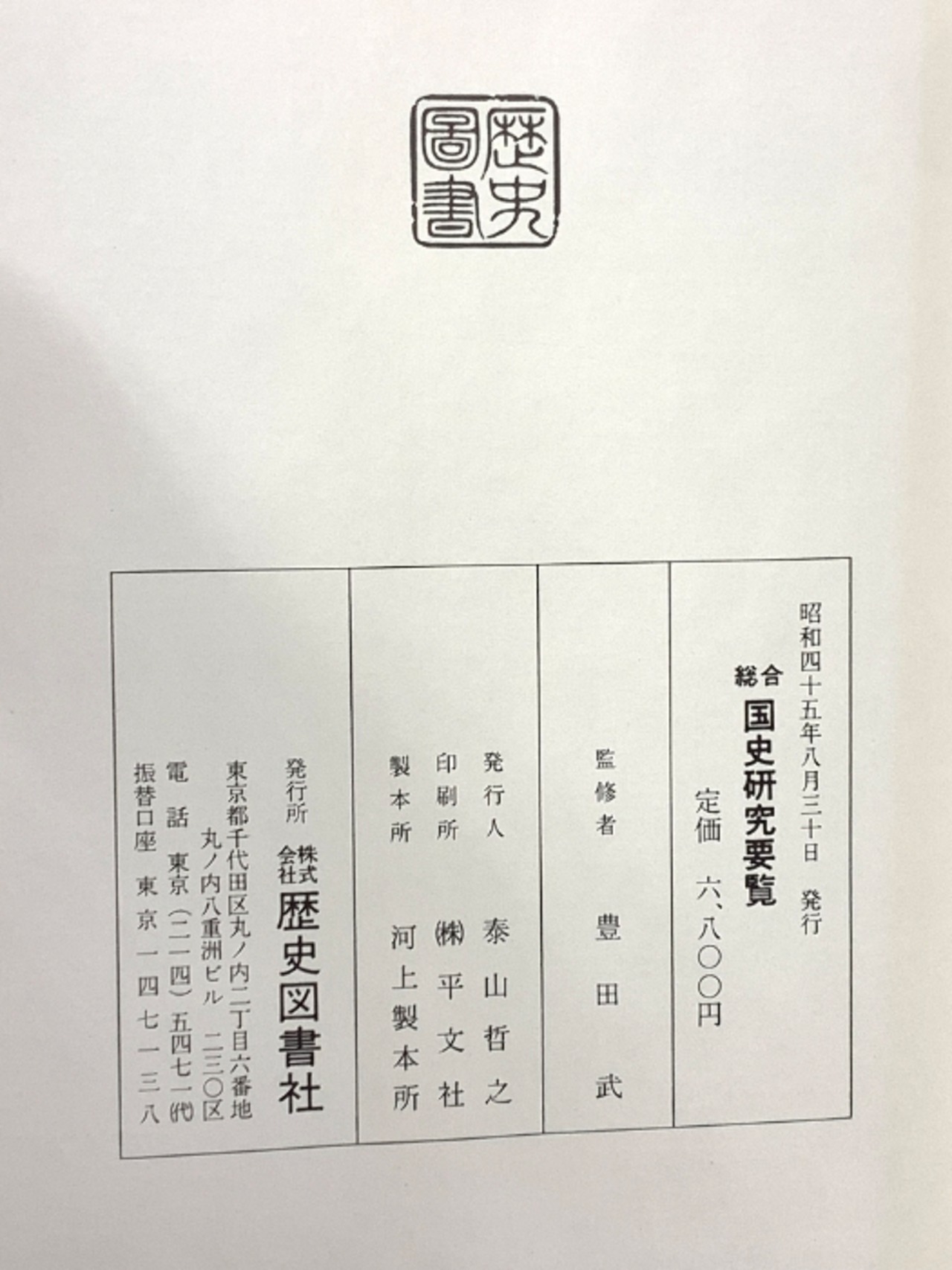 タイトル:総合国史研究要覧 歴史図書社 監修 豊田武