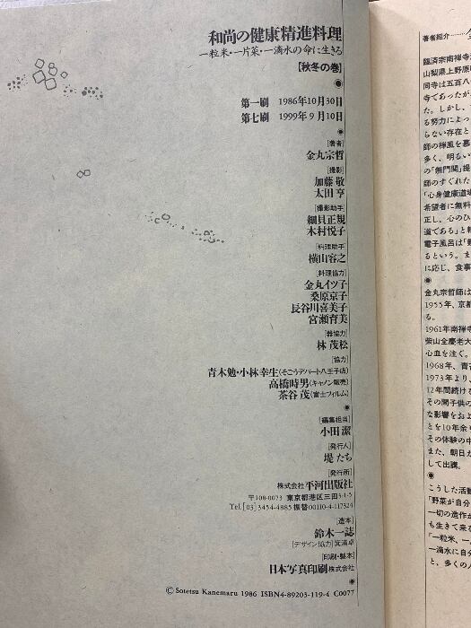 和尚の健康精進料理 秋冬の巻: 一粒米・一片菜・一滴水の命に生きる 平河出版社 金丸 宗哲