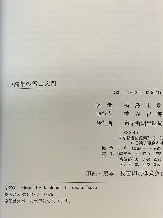 タイトル:中高年の雪山入門 東京新聞出版局 福島 正明