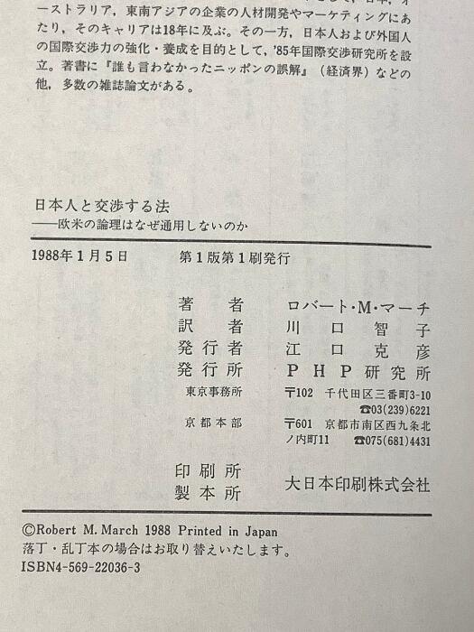 日本人と交渉する法 欧米の論理はなぜ通用しないのか PHP研究所 ロバート・M・マーチ