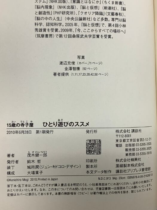 タイトル:15歳の寺子屋 ひとり遊びのススメ 講談社 茂木 健一郎