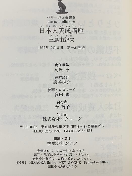 日本人養成講座 (パサージュ叢書 5 知恵の小径) メタローグ 三島 由紀夫