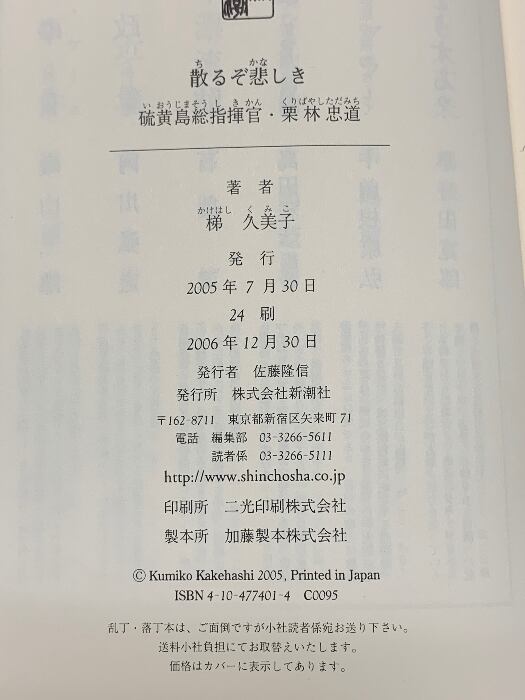 タイトル:散るぞ悲しき 硫黄島総指揮官・栗林忠道 新潮社 梯 久美子