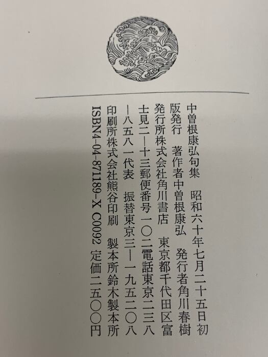 中曽根康弘句集 KADOKAWA 中曽根 康弘