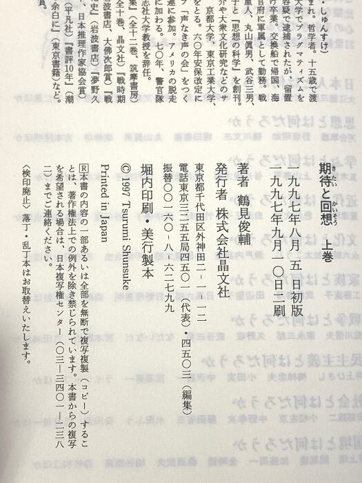 期待と回想 上巻 晶文社 鶴見 俊輔