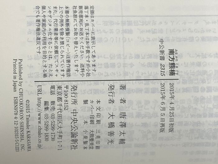 タイトル:南方熊楠 日本人の可能性の極限 (中公新書 2315) 中央公論新社 唐澤 太輔