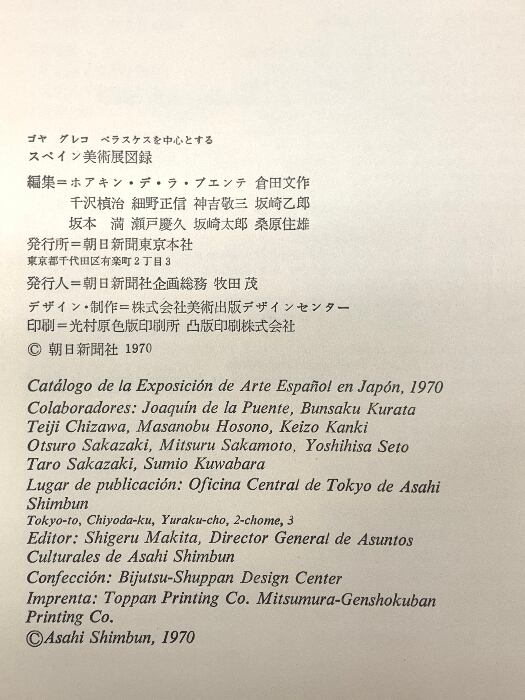 図録 スペイン美術館 ゴヤ・グレコ・ベラスケスを中心とする 1970 朝日新聞社