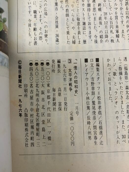 1億人の昭和史 3 1976年1月 毎日新聞社 太平洋戦争 昭和16年~20年