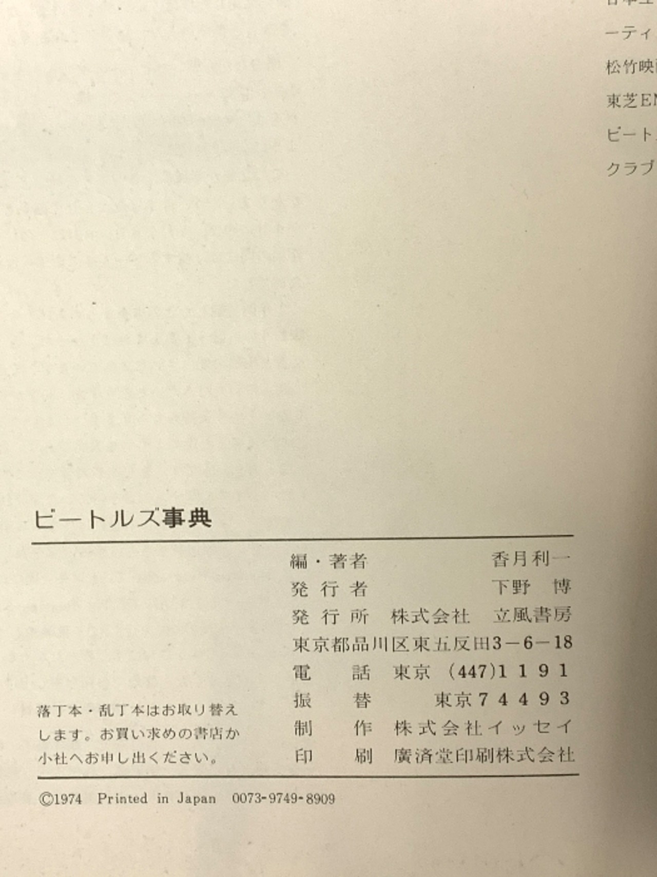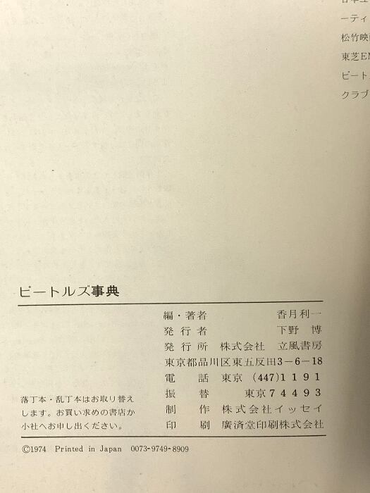 ビートルズ辞典 Dictionary of the Beatles 立風書房