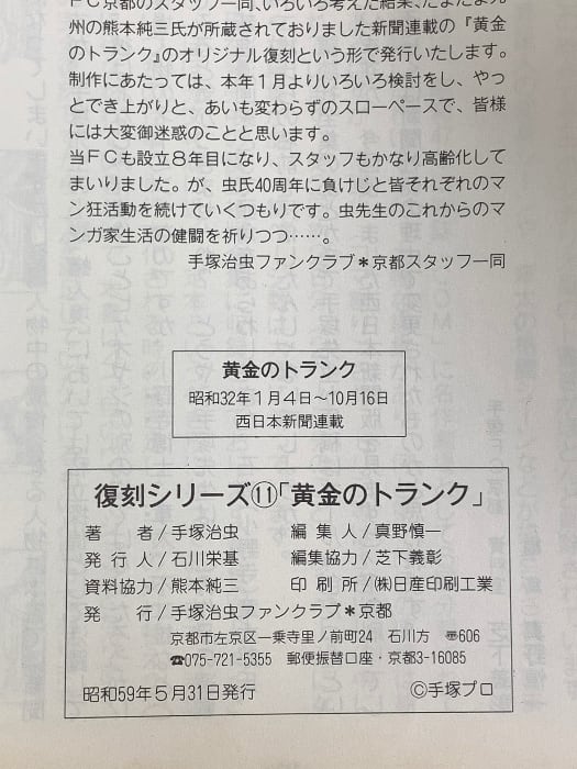 黄金トランク オリジナル完全版 手塚治虫 手塚治虫ファンクラブ京都