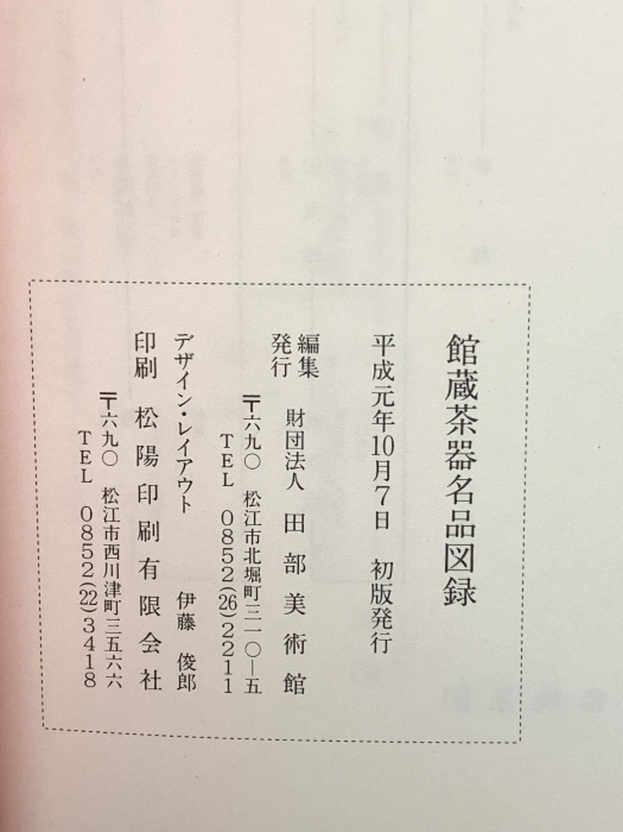 タイトル:図録 田部美術館 館蔵茶器名品図録 平成元年発行