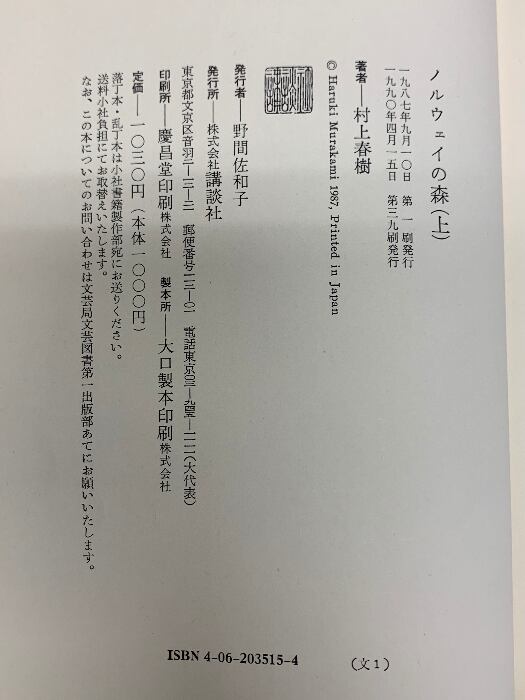 タイトル:ノルウェイの森 上・下 2巻セット 村上春樹