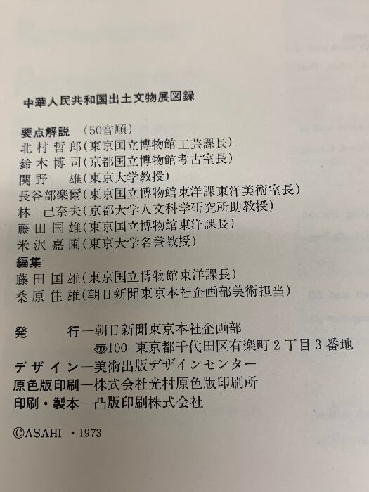 中華人民共和国出土文物展 朝日新聞東京本社企画部 1973