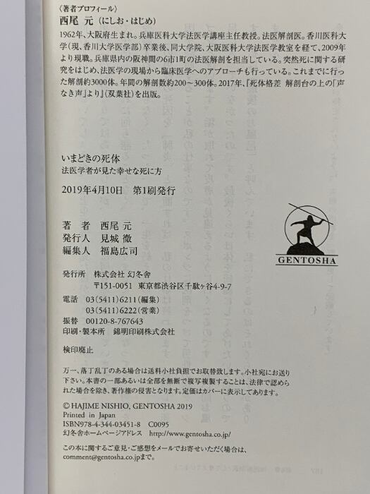 タイトル:いまどきの死体 法医学者が見た幸せな死に方 幻冬舎 西尾 元