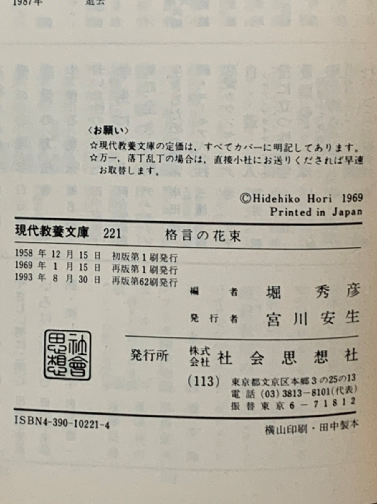 格言の花束 (現代教養文庫 221) 社会思想社 堀 秀彦