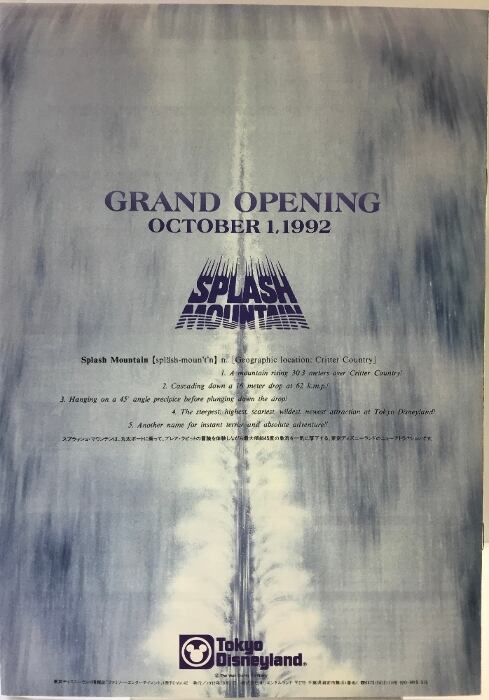 東京ディズニーランド ニューアトラクションオープン「スプラッシュ・マウンテン」パンフレット 季刊VOL.42 1992年