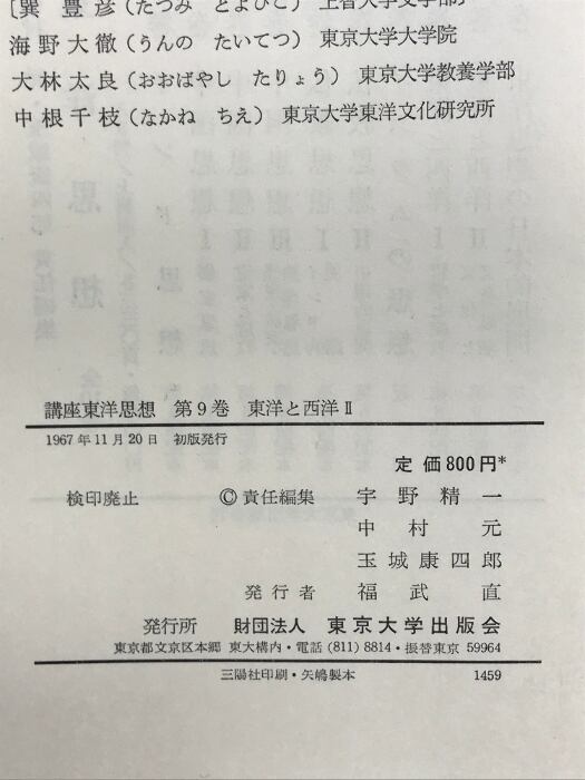 講座 東洋思想(不揃い・5巻6巻10巻無/全7冊セット)東京大学出版会 編:宇野精一 中村元 他 1967年