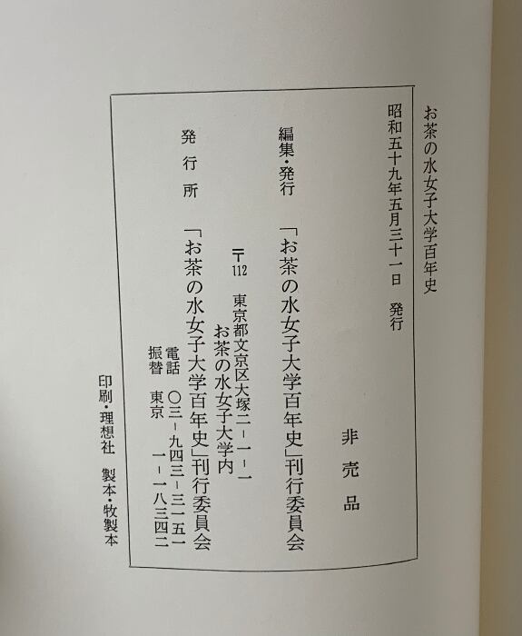 お茶の水女子大学百年史 昭和59年 お茶の水女子大学百年史刊行委員会