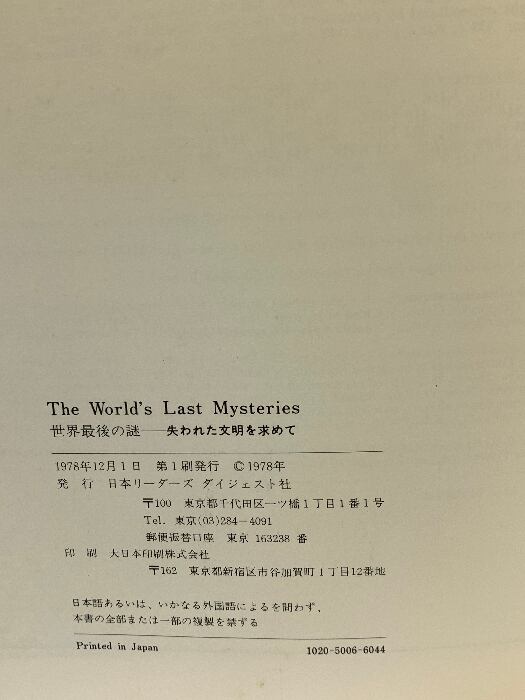 タイトル:図録 世界最後の謎 失われた文明を求める 1978