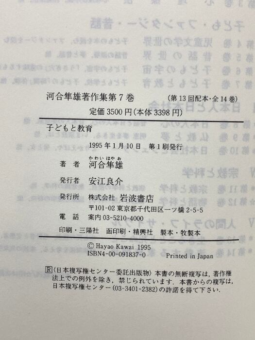 タイトル:子どもと教育 河合隼雄著作集 第7巻 岩波書店 河合隼雄