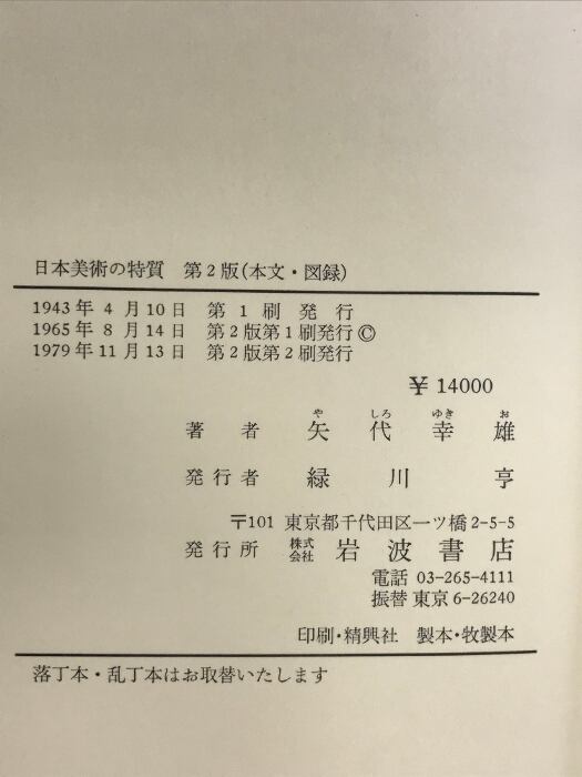 日本美術の特質(第2版+図録/全2冊セット)岩波書店 著:矢代幸雄 1979年