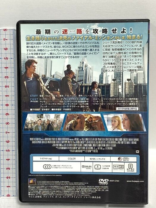 タイトル:メイズ・ランナー:最期の迷宮 20世紀フォックスホームエンターテイメント ディラン・オブライエン DVD