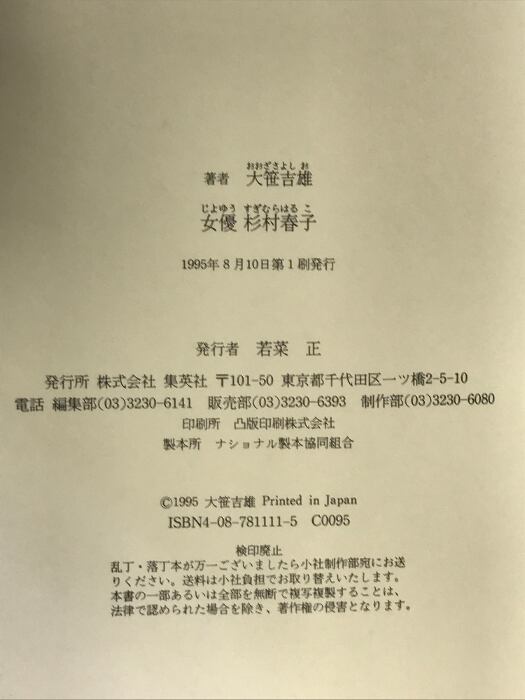 タイトル:女優 杉村春子 集英社 大笹吉雄