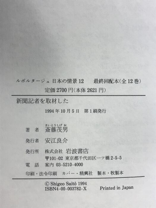 タイトル:ルポルタージュ日本の情景〈12〉新聞記者を取材した 岩波書店 斎藤 茂男
