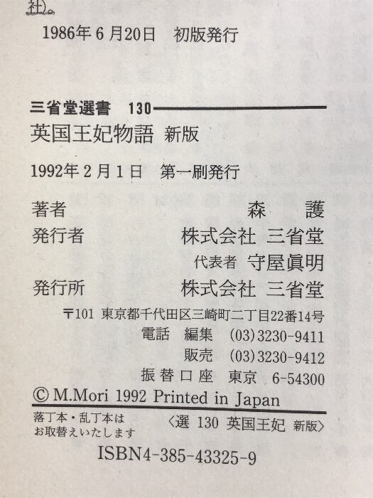 タイトル:英国王妃物語 新版 (三省堂選書 130) 三省堂 森 護