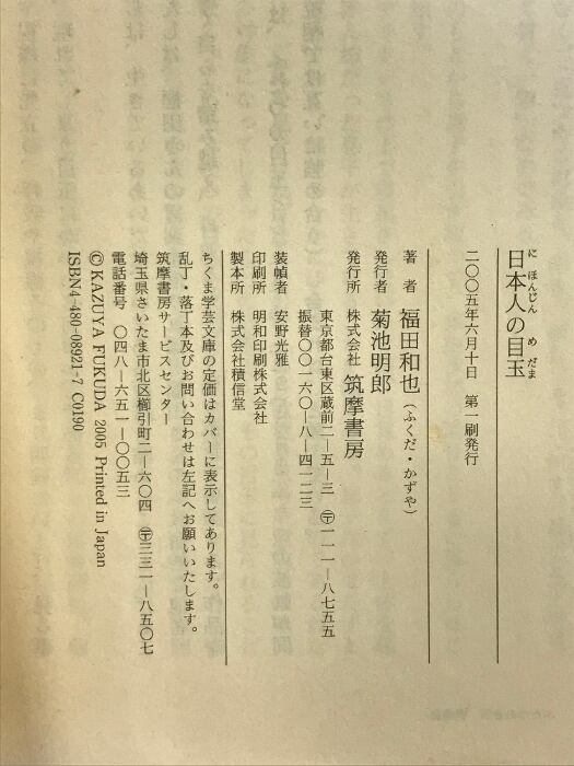 日本人の目玉 ちくま学芸文庫 筑摩書房 福田 和也