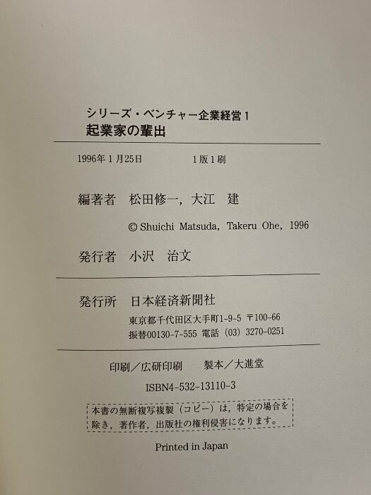 タイトル:起業家の輩出: 日本型支援システムの構築 日経BPマーケティング(日本経済新聞出版 松田 修一