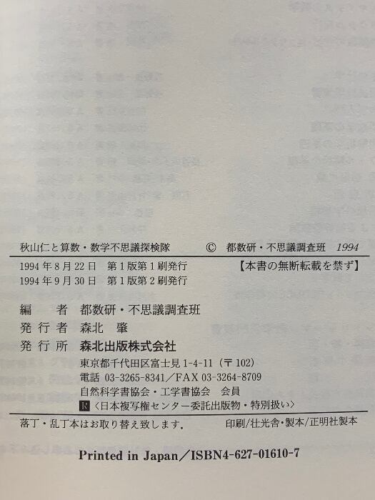 タイトル:秋山仁と算数・数学不思議探検隊 森北出版 都数研・不思議調査班