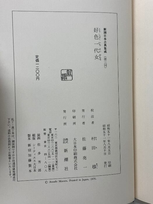 好色一代女 新潮日本古典集成 第3回 新潮社 西鶴, 井原