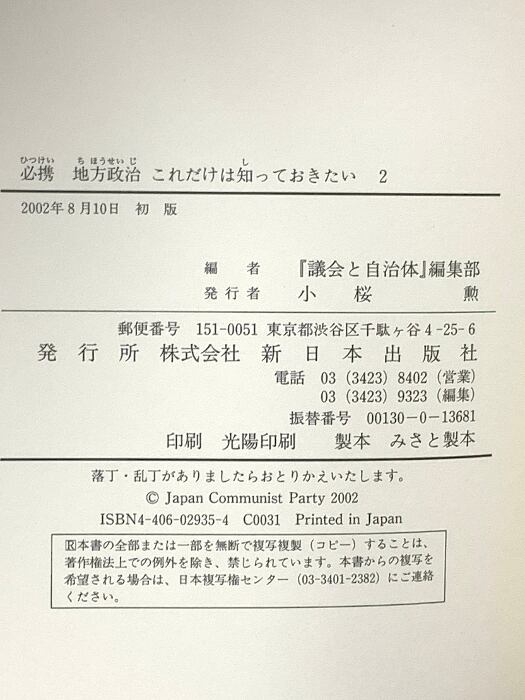 必携地方政治これだけは知っておきたい 2 新日本出版社 議会と自治体編集部
