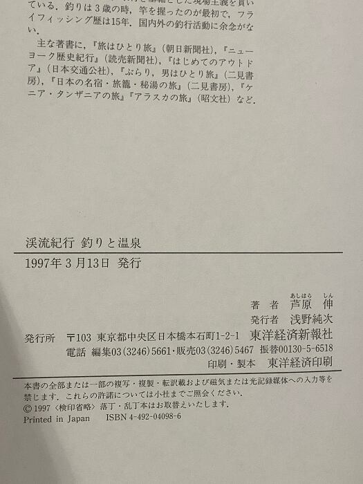 タイトル:釣りと温泉 渓流紀行 東洋経済新報社 芦原 伸