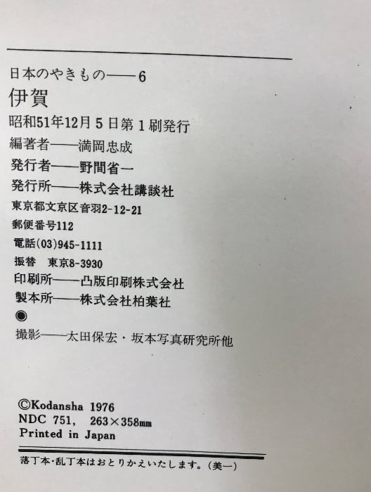 タイトル:【図録】日本のやきもの(※不揃い/全5冊セット)備前・丹波・信楽・伊賀・常滑 発行:講談社 昭和51年・昭和54年