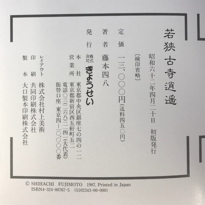 タイトル:若狭古寺逍遥 ぎょうせい 藤本 四八