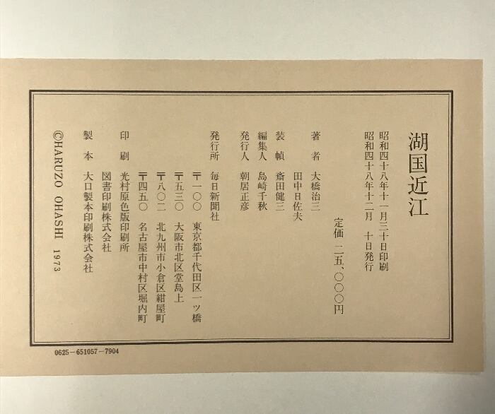 【図録】写真集「湖国近江」発行:毎日新聞社 著:大橋治三・田中日佐夫 昭和48年